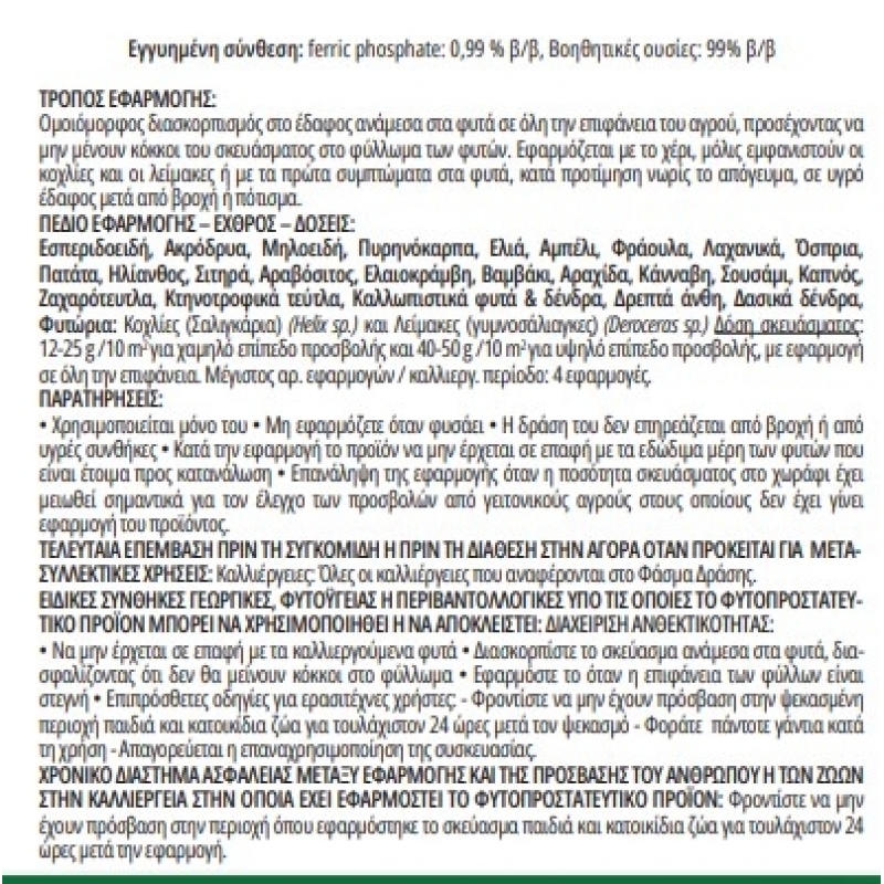 - Τύπος: Δόλωμα Κατά Σαλιγκαριών & Γυμνοσάλιαγκων με Βάση το Σίδηρο