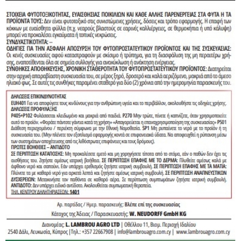 - Χρήση: Έως και την Ημέρα της Συγκομιδής